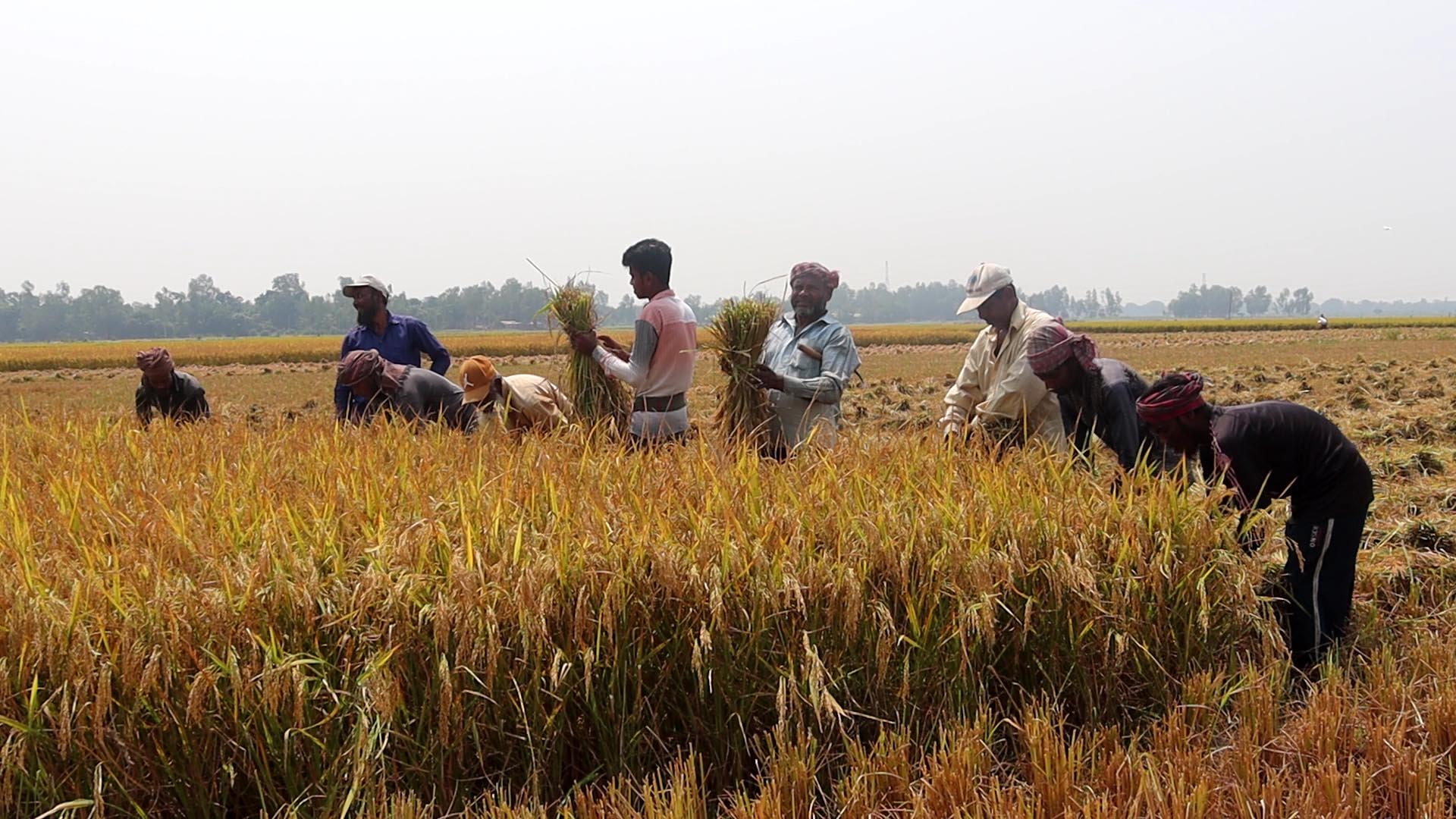 আমন ধান কাটা-মাড়াইয়ে ব্যস্ত শ্রমিক